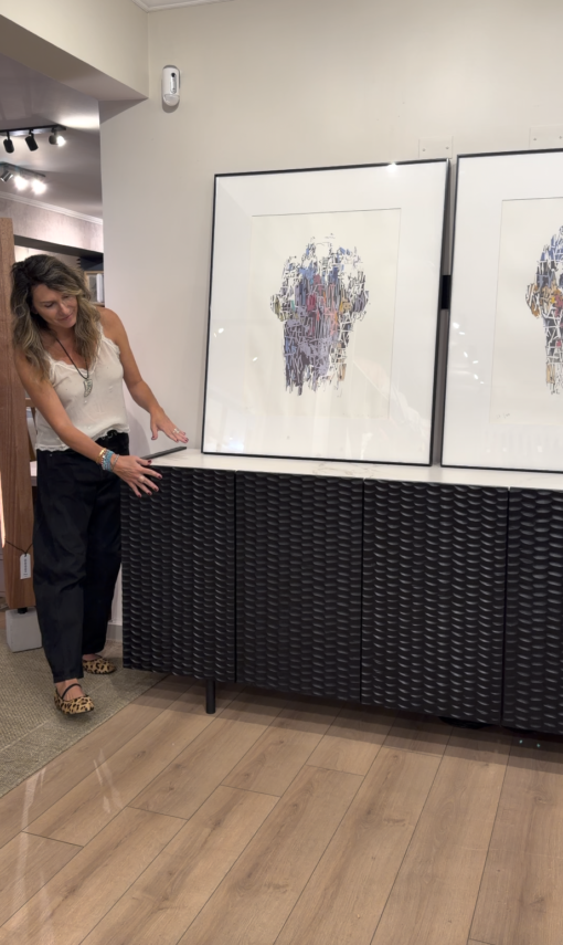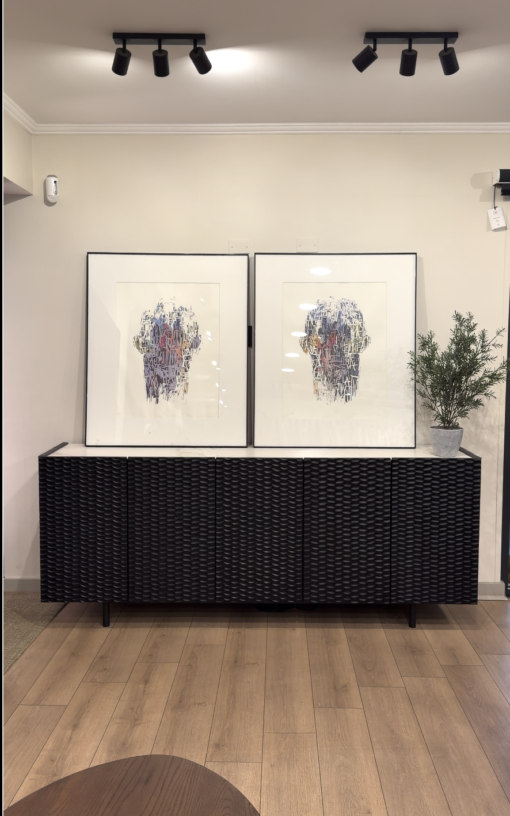 Un mueble sofisticado y funcional, fabricado en madera de lenga, con puertas talladas a mano y terminaciones de alta calidad.