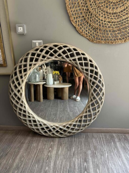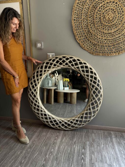 Su silueta redonda transmite equilibrio y armonía, convirtiéndolo en una pieza ideal para ampliar visualmente los espacios y aportar luminosidad. Perfecto para ubicar sobre sofás, consolas o como punto focal en recibidores y muros protagonistas.