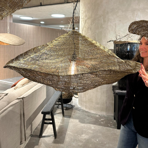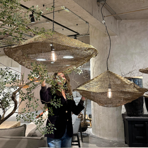 ✨Maravillosa lámpara colgante tejida en alambre con linda terminación color bronce envejecido.