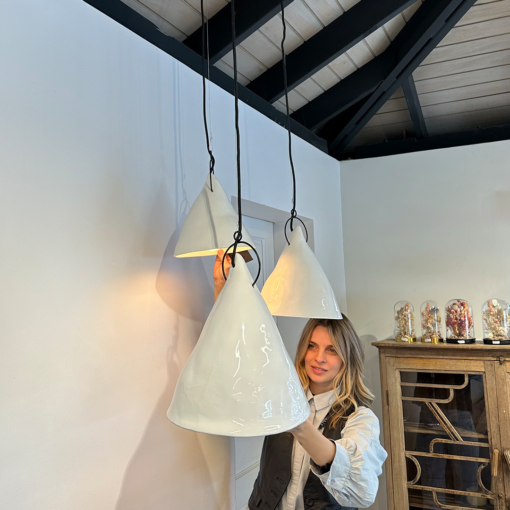 De diseño atemporal, escultórico y contemporáneo, está delicadamente hecha a mano en cerámica, destacando por su forma orgánica e irregular que refleja su carácter artesanal.