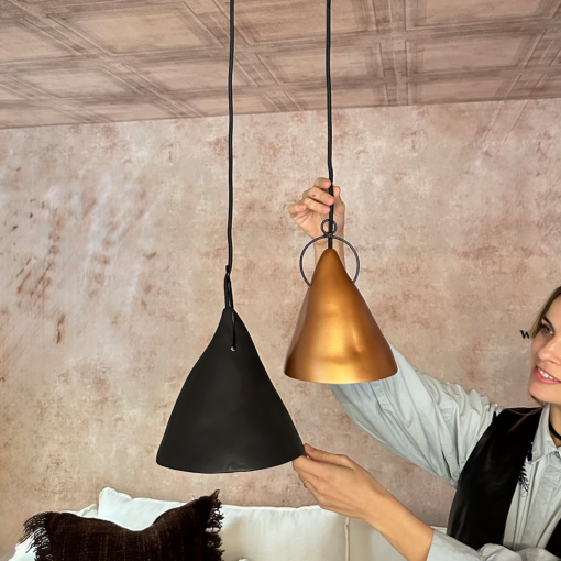 Su interior esmaltado en blanco brillante permite una iluminación focal limpia y eficiente, mientras que sus distintas terminaciones reflejan diferentes expresiones del diseño y la materia.