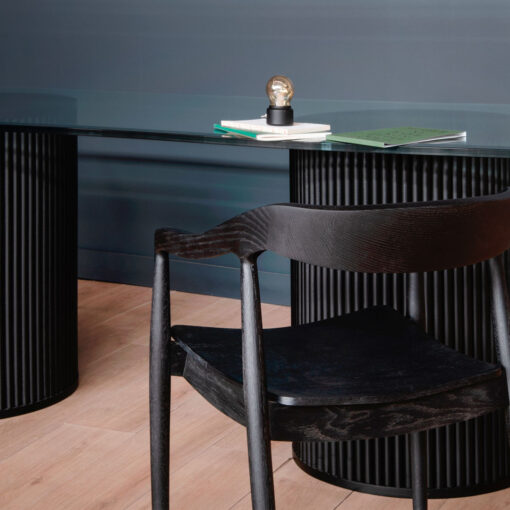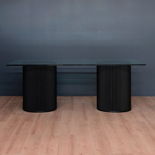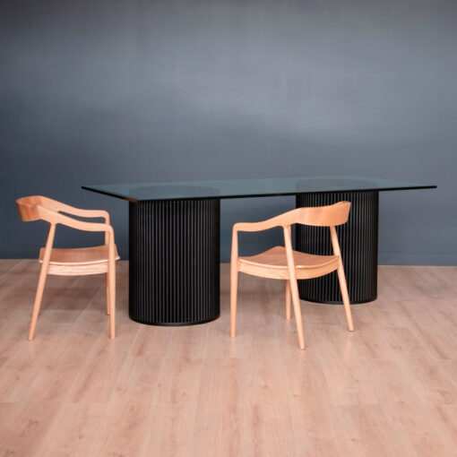 Mesa con base cilíndrica y palillaje, un diseño único que resalta la belleza natural de la madera. Bases de Roble Americano tinte Negro que la hace súper firme y estable.🎨 Color a elección, mezcla como quieras.