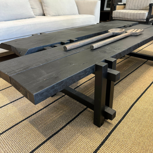 Fabricadas en roble de demolición con tinte Milesi negro, que resalta la textura natural de la madera y aporta un estilo sólido, elegante y lleno de carácter.