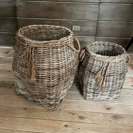 Canasto grande: 44 cms diámetro x 58 cms alto.