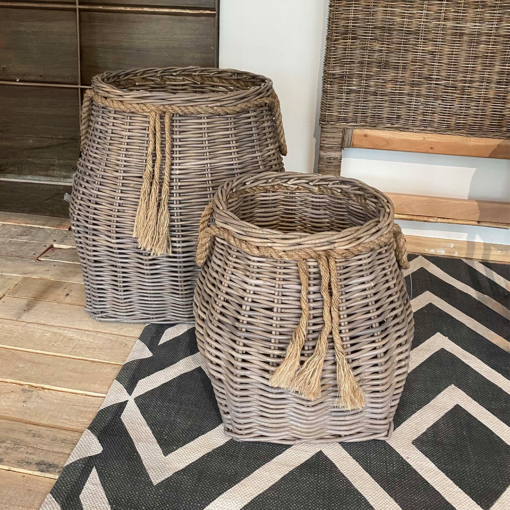 Precioso set de 2 canastos de rattan con un lindo detalle en cuerda rústica en la parte superior. 👏🏻👏🏻
