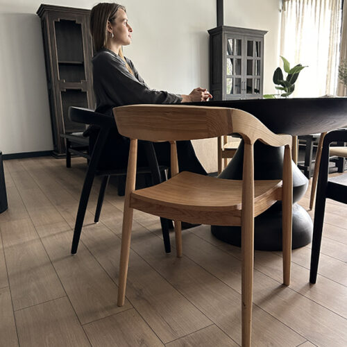 Madera de Olmo en tono nogal con vetas preciosas, muy cómoda, combinable y espectacularmente linda.